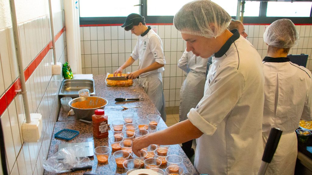 Nos talentueux élèves de 1TS MHR ont imaginé ces menus, qui ont ensuite été confectionnés avec brio par les élèves de 1ère BAC PRO Cuisine. Un grand bravo à tous les élèves et étudiants en restauration pour cette belle initiative !
